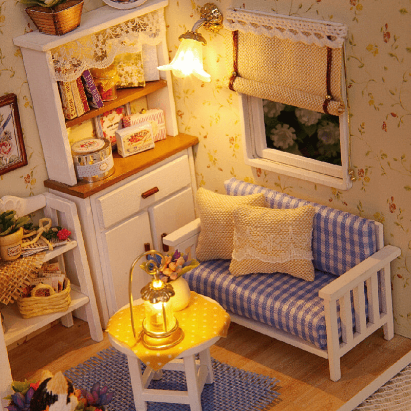 This miniature wooden house features realistic furniture, decorative elements, and a warm LED light that creates a cozy and beautiful atmosphere. The DIY assembly process is enjoyable and helps improve creativity, patience, and crafting skills.